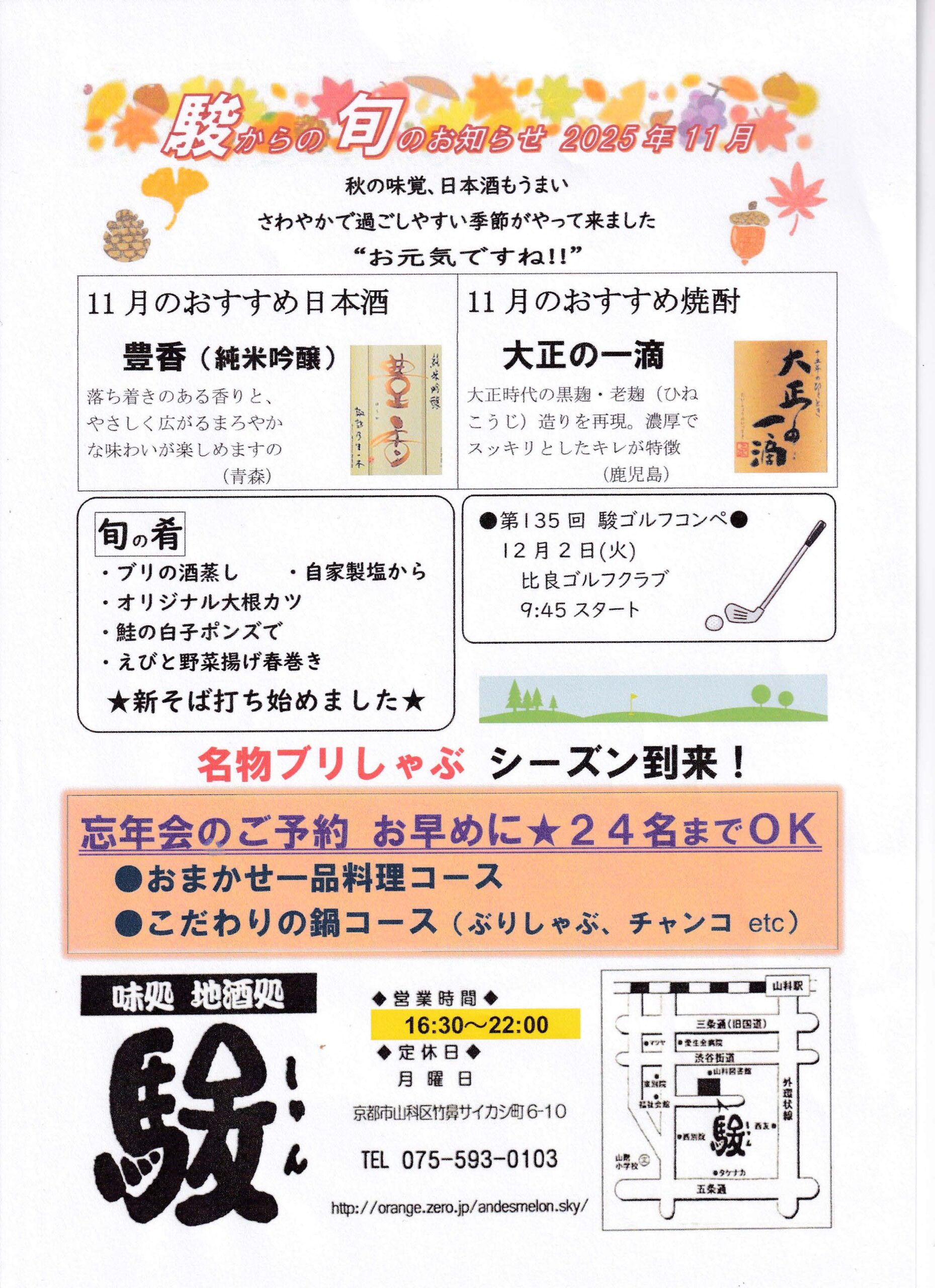 駿から旬のお知らせ 2025年11月